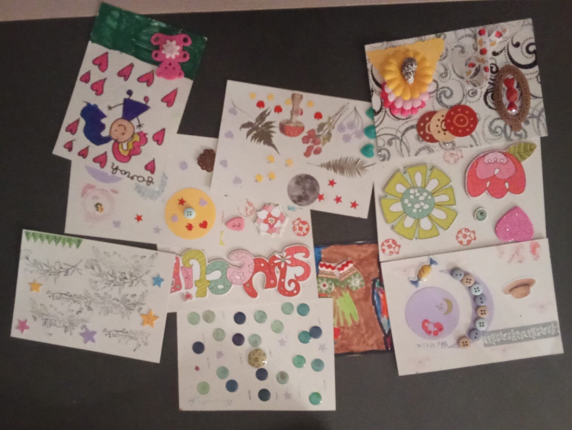 * Durant plusieurs semaines, des enfants entre 5 et 12 ans de Maurepas, mais aussi d'Elancourt, de Coignières ou encore de Fontenay Le Fleury ont customisé des cartes (plus de 75) en laissant leur imagination et leur coeur parler. * Ici, ce sont quelques unes des 40 cartes customisées lors d'un atelier créatif, où les enfants ont mis tout leur coeur à créer de jolies cartes en pensant à ceux qui les recevront.
